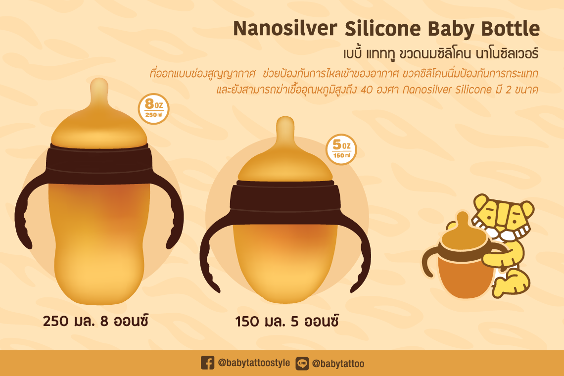 Nanosilver Silicone Baby Bottle. เบบี้ แทททู ขวดนมซิลิโคน นาโนซิลเวอร์