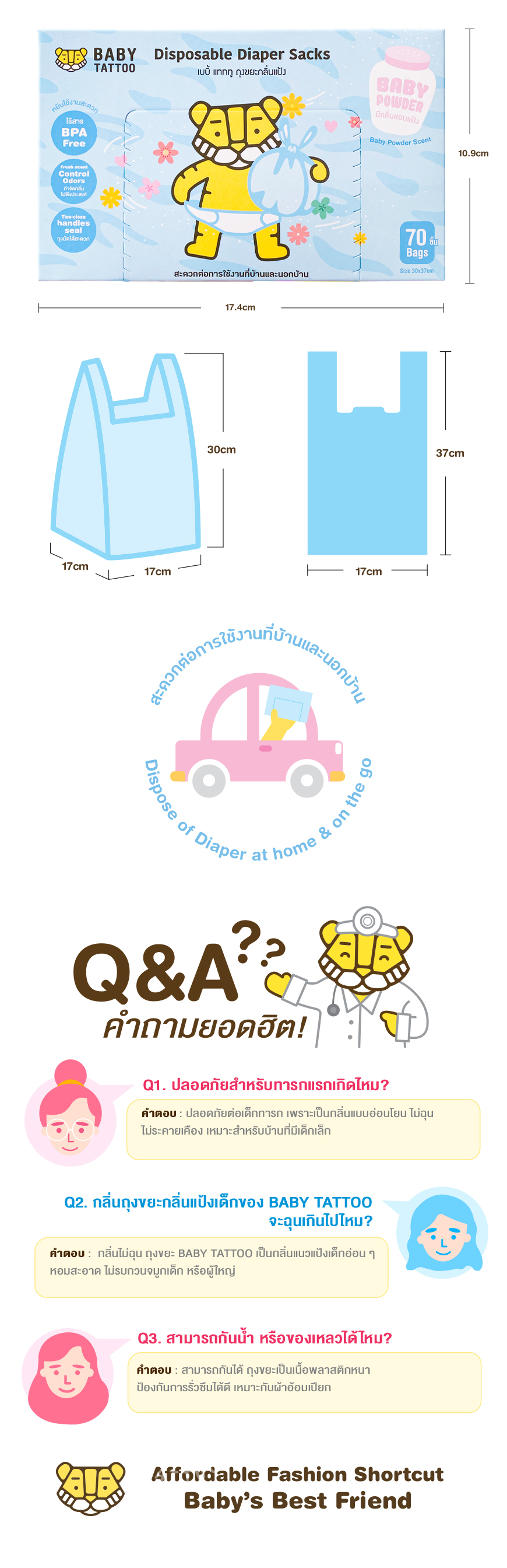 BABY TATTOO ถุงขยะกลิ่นแป้งเด็ก 3 กล่อง 210 ชิ้น