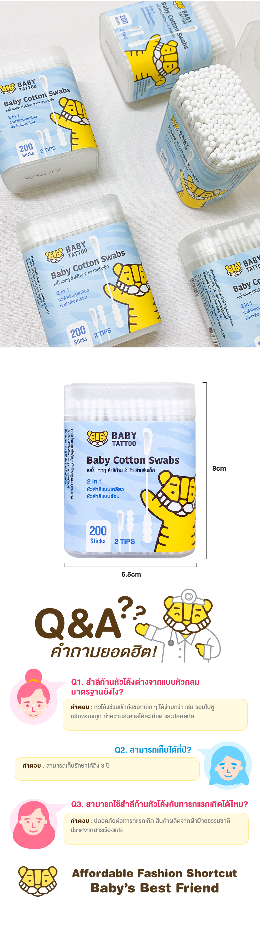BABY TATTOO สำลีก้าน 2 หัว สำหรับเด็กแรกเกิด ( 1 กล่อง 200 ก้าน )
