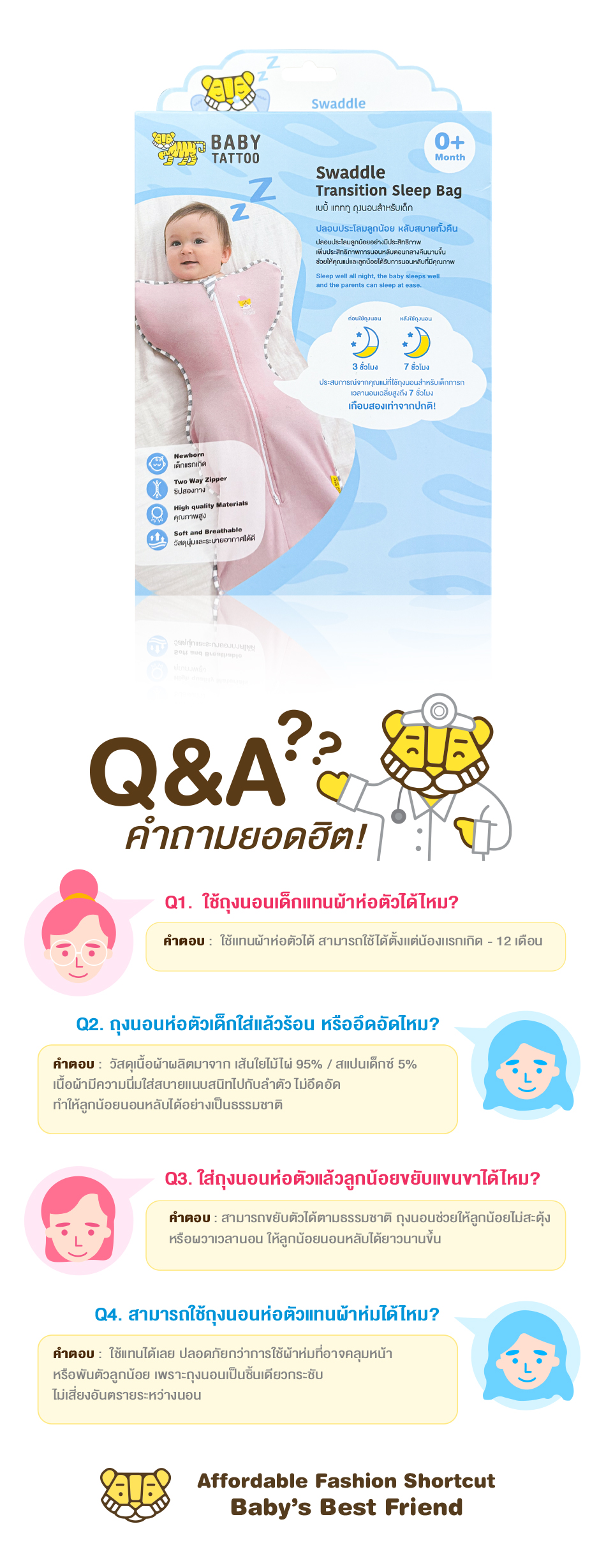 BABY TATTOO ถุงนอนสำหรับเด็ก ให้ความรู้สึกของลูกน้อยนอนสบาย ไม่ร้อน ผลิตจากผ้าcotton แท้คุณภาพดี ให้สัมผัสที่นุ่ม ไม่ระคายเคืองต่อผิวของลูกน้อย