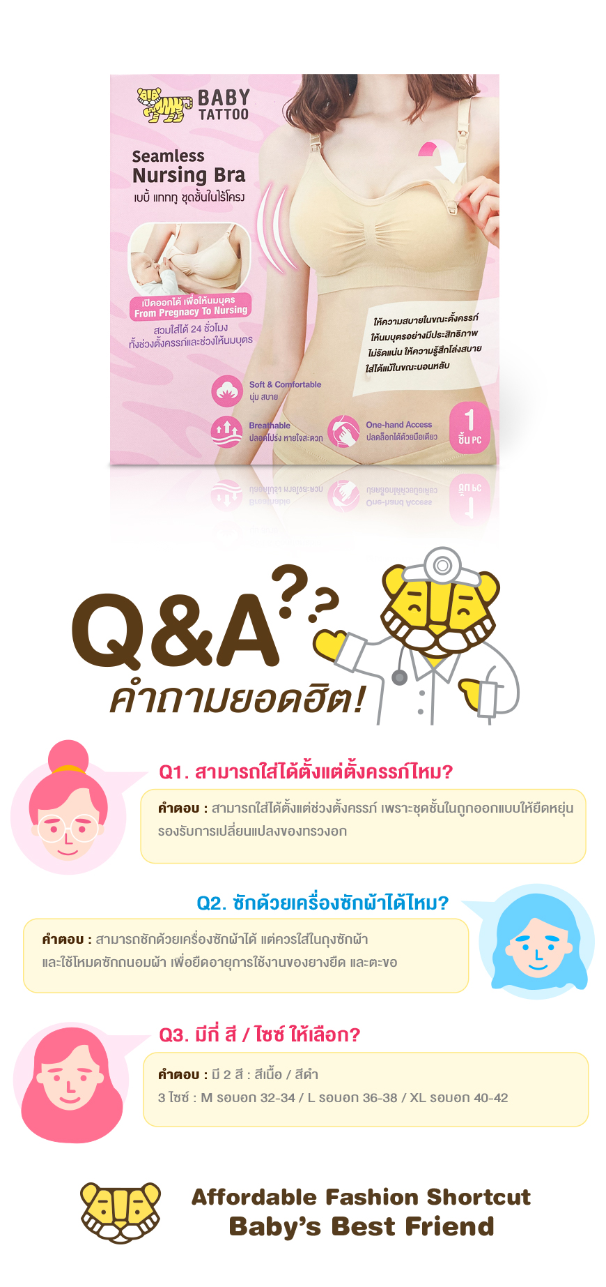 สวมใส่ได้ 24 ชั่วโมง ตั้งเเต่ช่วงตั้งครรภ์ตลอดจนช่วงให้นมบุตร