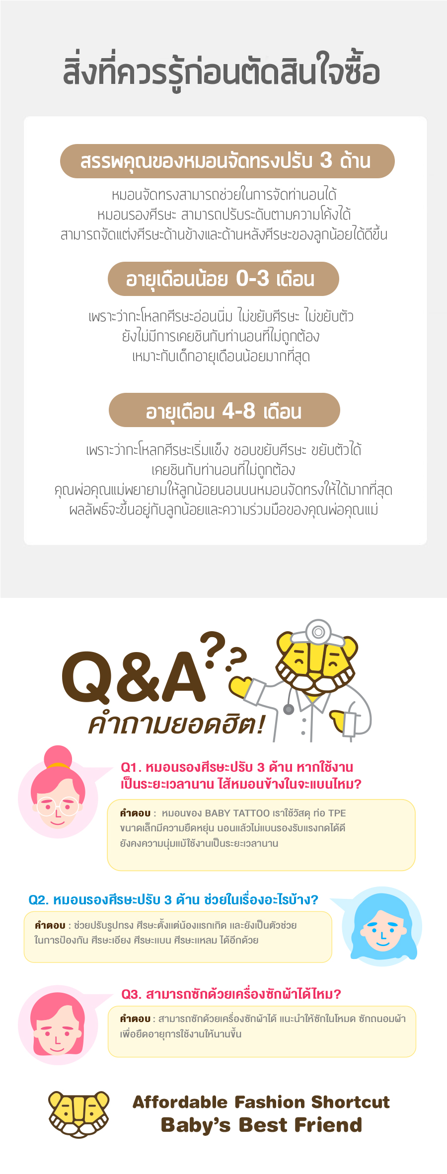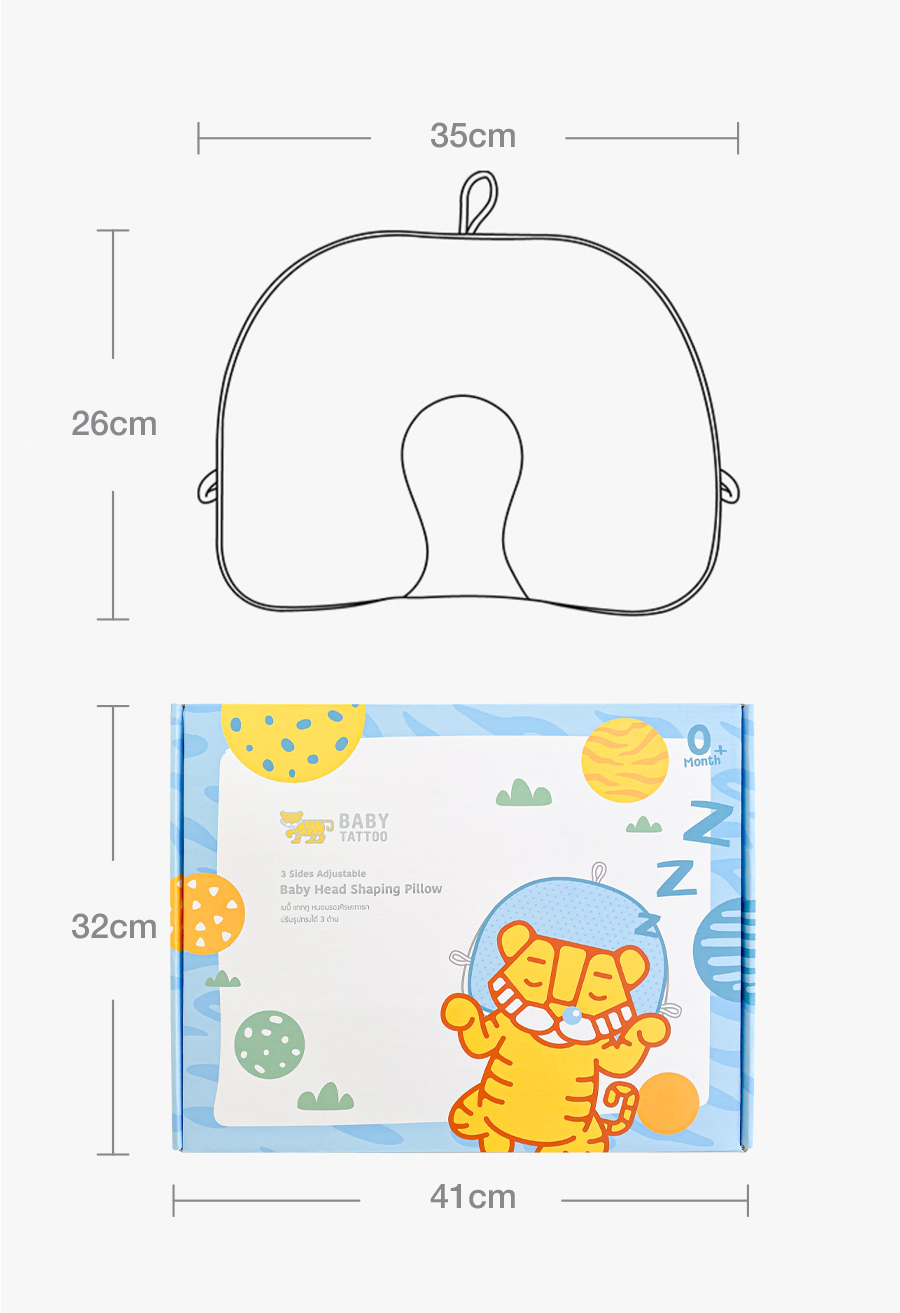 BABY TATTOO หมอนรองศีรษะปรับ 3 ด้าน สำหรับเด็กแรกเกิดขึ้นไป ออกแบบมาเพื่อเด็กทารกโดยเฉพาะ ปรับรูปทรงศีรษะได้ 3 ด้าน ให้ลูกน้อยมีรูปทรงศีรษะที่สวยงาม
