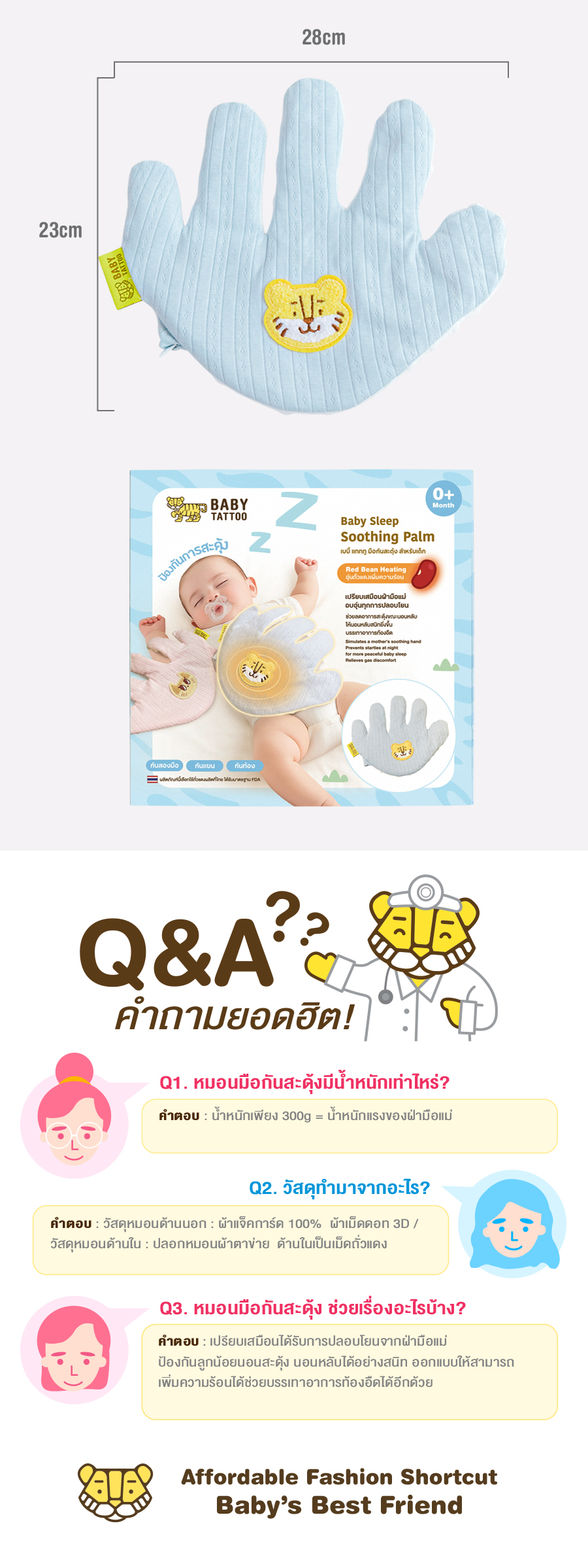 BABY TATTOO ถุงมือกันสะดุ้งสำหรับเด็ก เปรียบเสมือนฝ่ามือของคุณแม่เพื่อปลอบโยนลูกน้อย ป้องกันการนอนสะดุ้งในเวลากลางคืน ลูกน้อยนอนหลับได้สนิทมากขึ้น