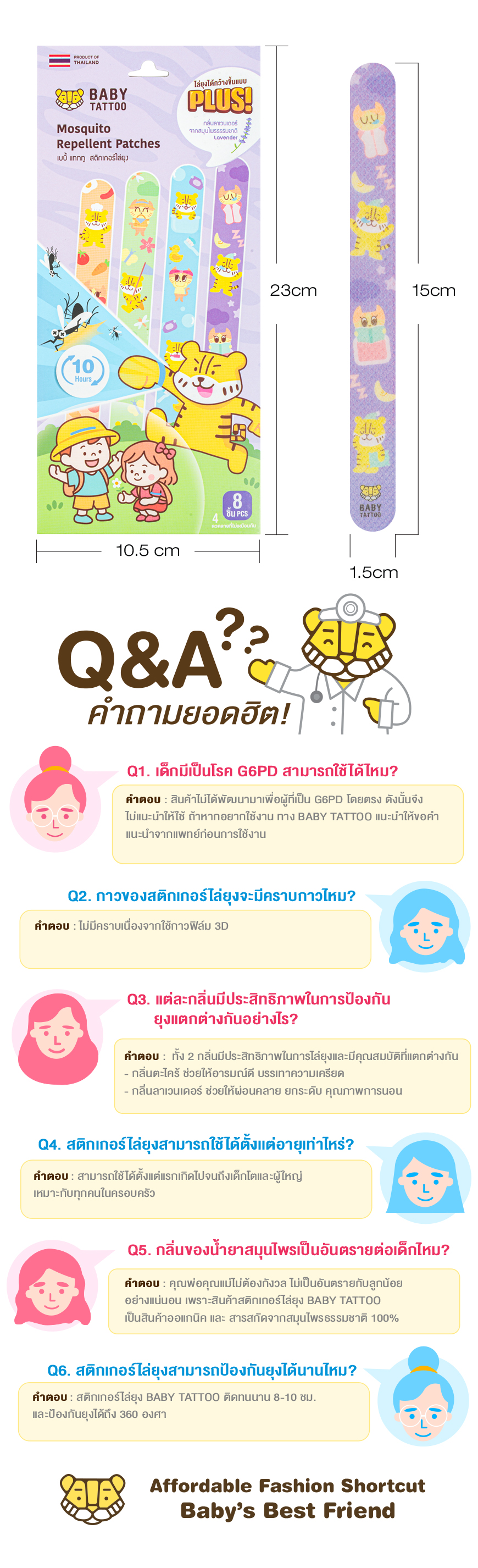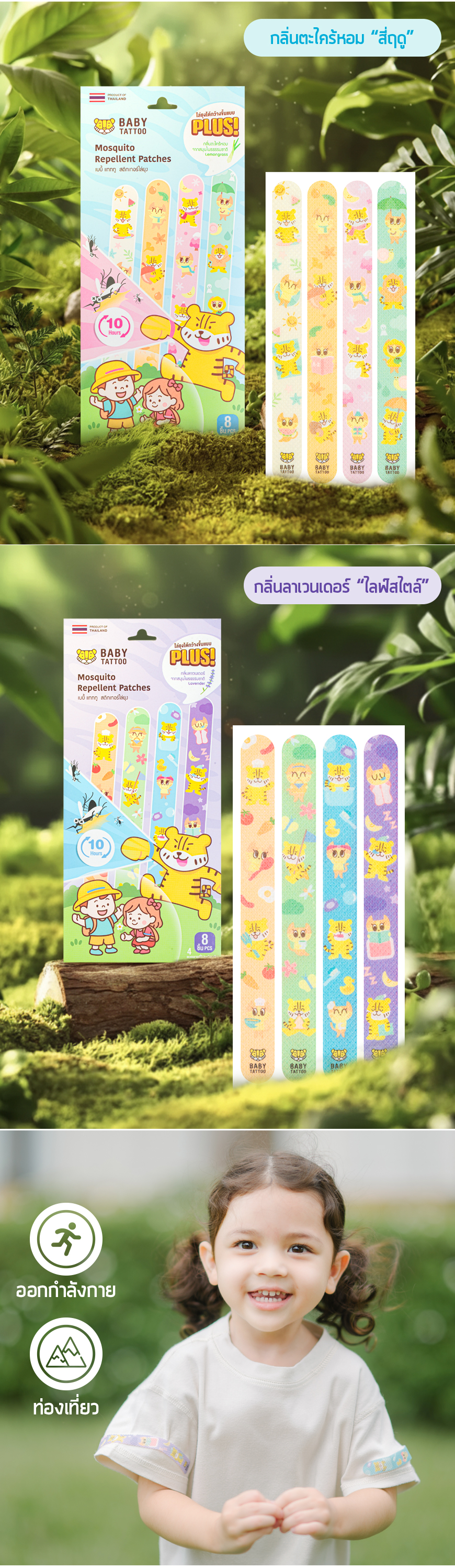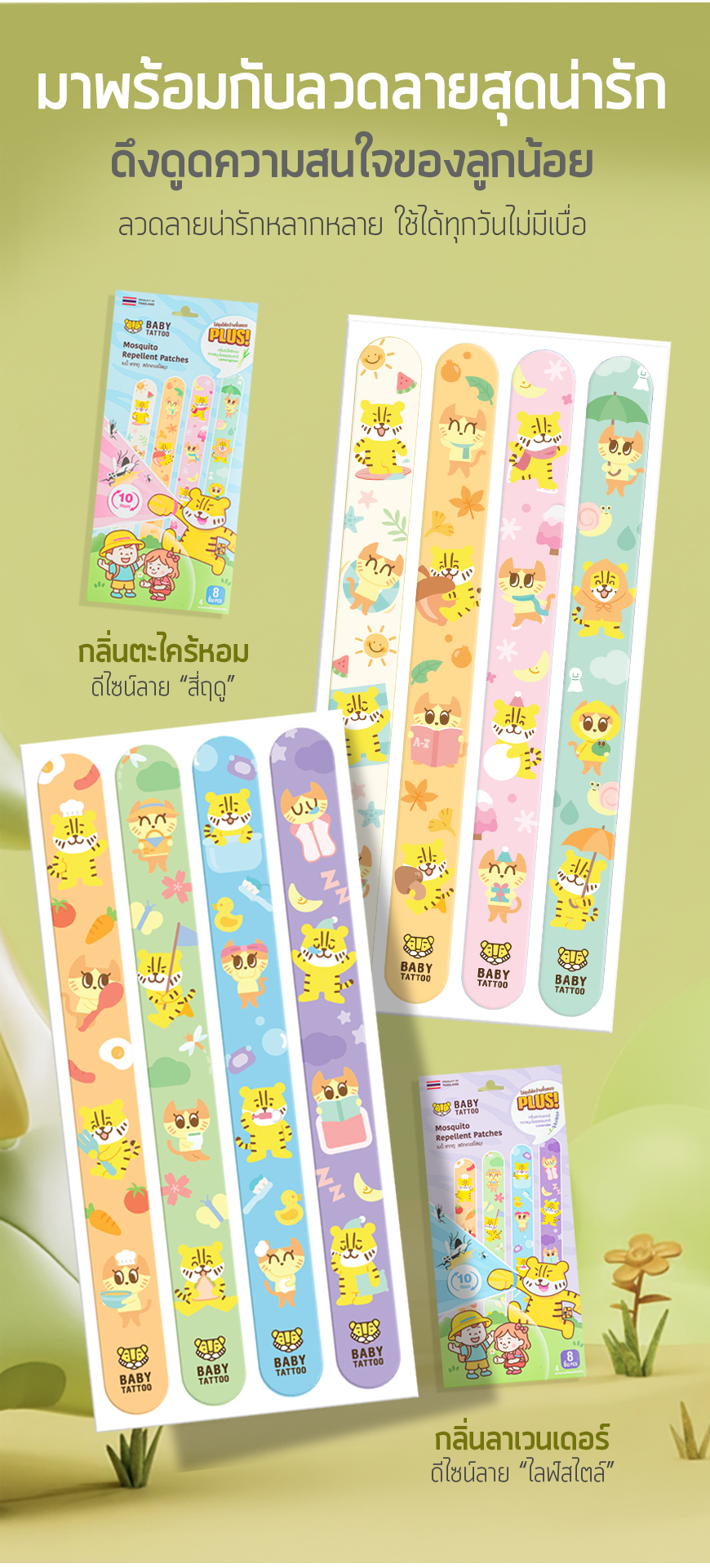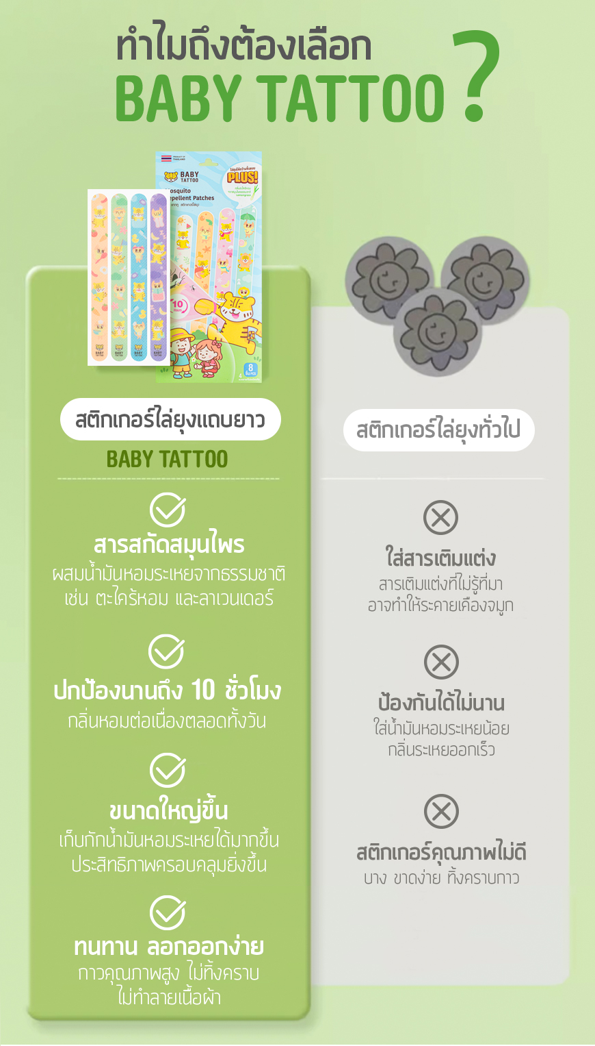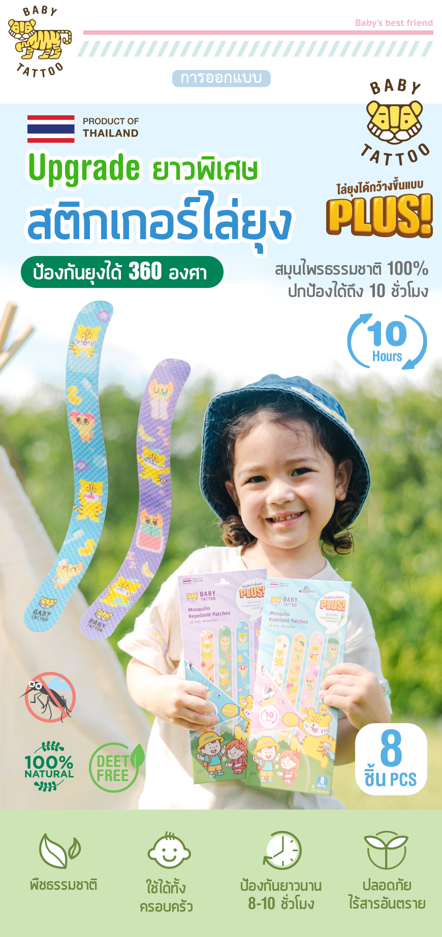 BABY TATTOO สติกเกอร์กันยุงเเถบยาว (1 ซอง 8 ชิ้น)