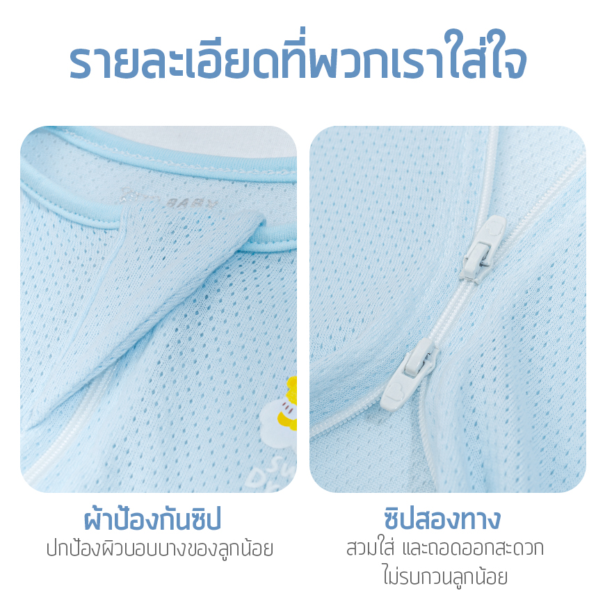 - ซิปสองทาง เปิด–ปิดสะดวก เปลี่ยนผ้าอ้อมง่าย