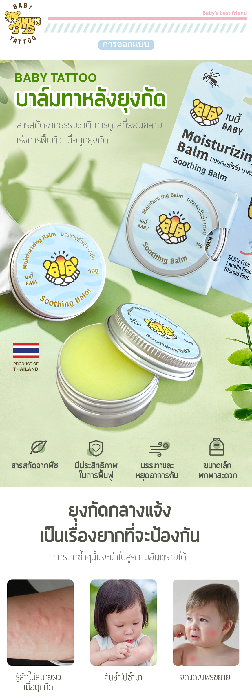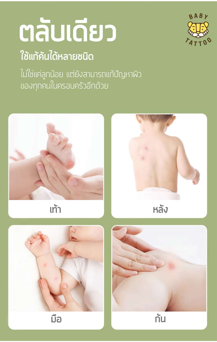 BABY TATTOO บาล์มทาหลังยุงกัด รวม 4 สรรพคุณในตลับเดียว ลดตุ่มแดง / ลดรอยแดง /บรรเทาอาการคัน / บำรุงผิวให้ชุ่มชื้น เด็กแรกเกิดสามารถใช้ได้